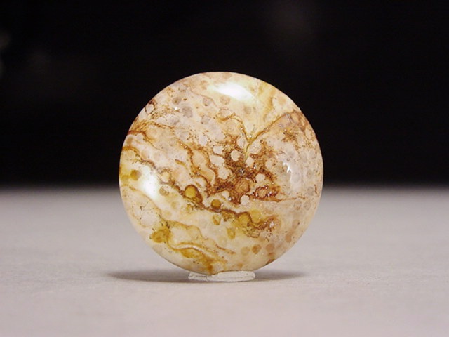 Fossil palmwood. Light background with darker spots and swirls. Hard material from Southern US