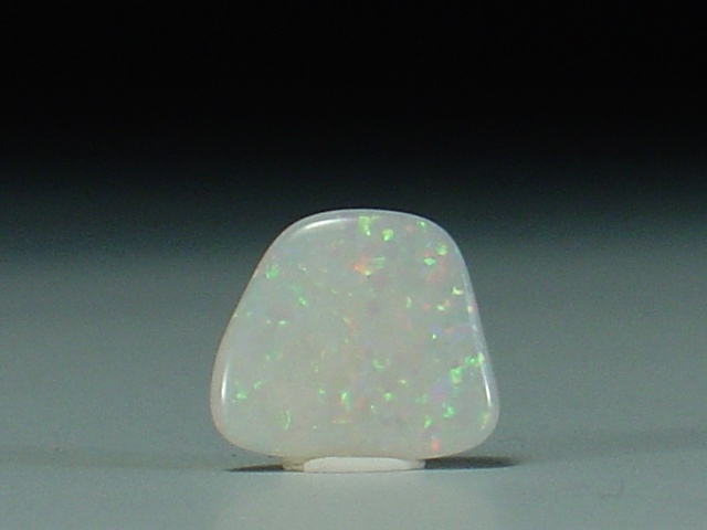 Great even large pinfire throughout, green, yellow, orange, and blue solid opal with a white base color. I acquired this stone from an old WWII era collection. It was cut in the 1940's in Australia.
