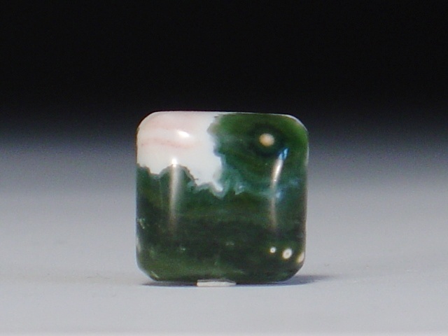 Dark green, white, and a touch of pink. Hard material from Madagascar.